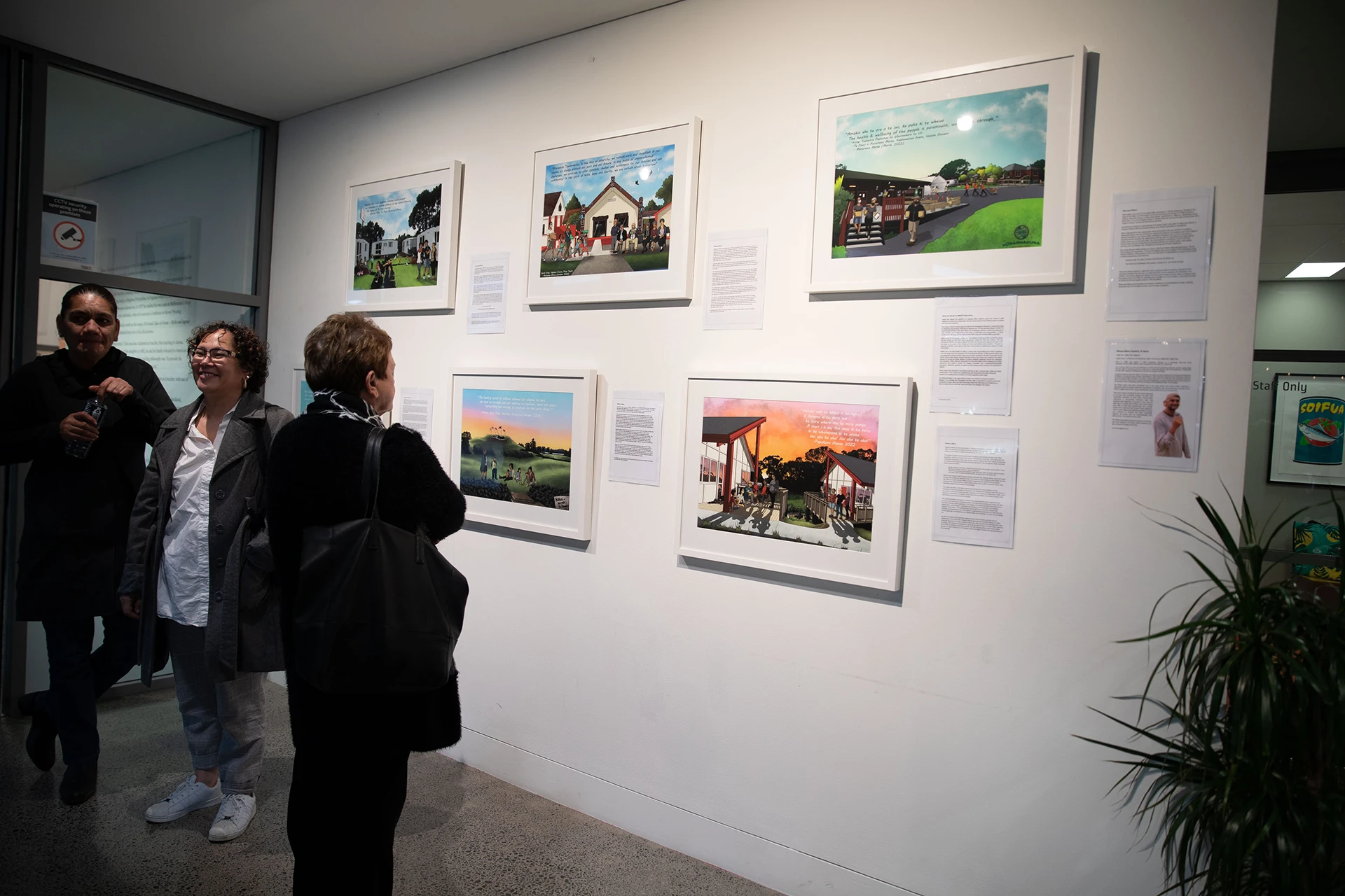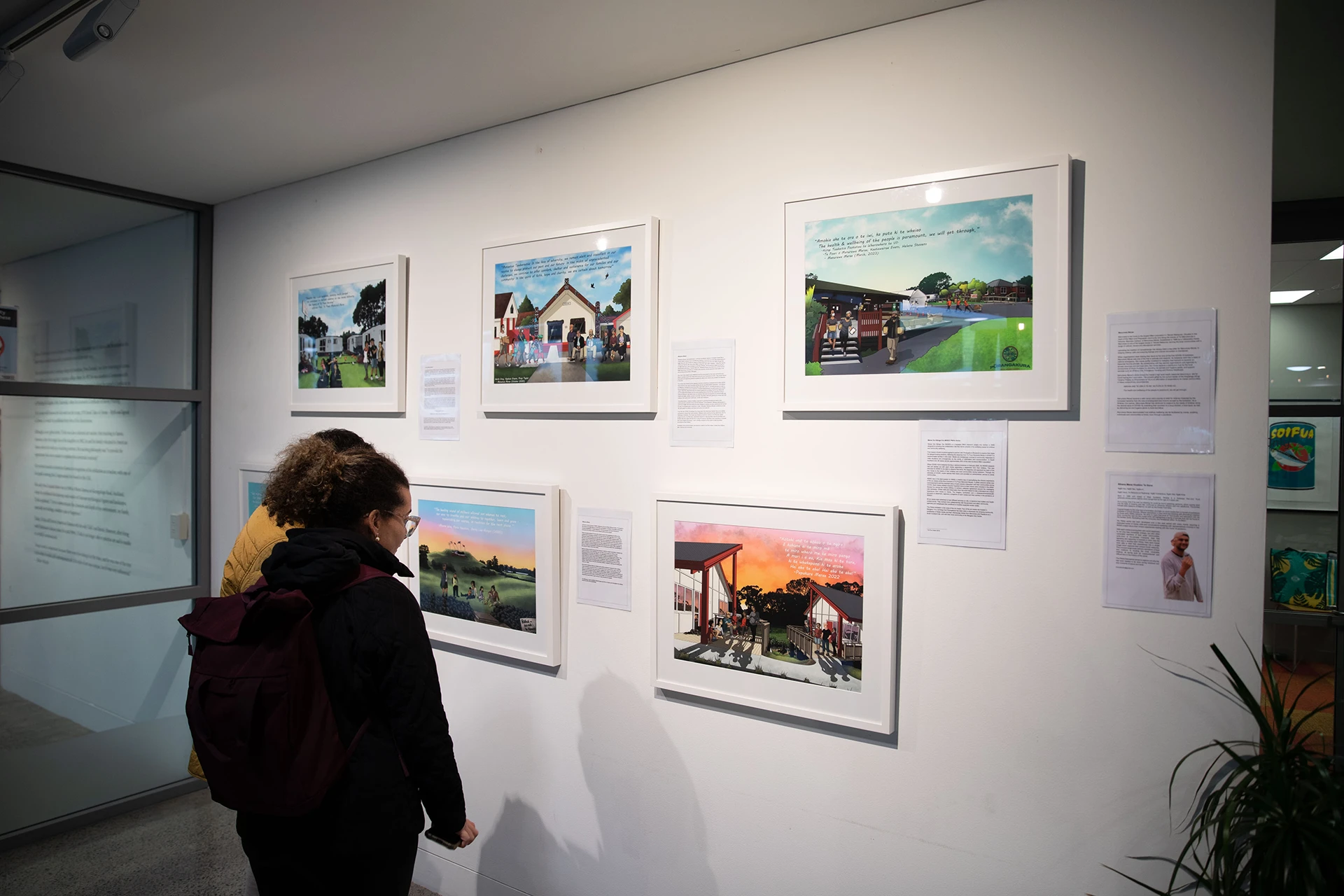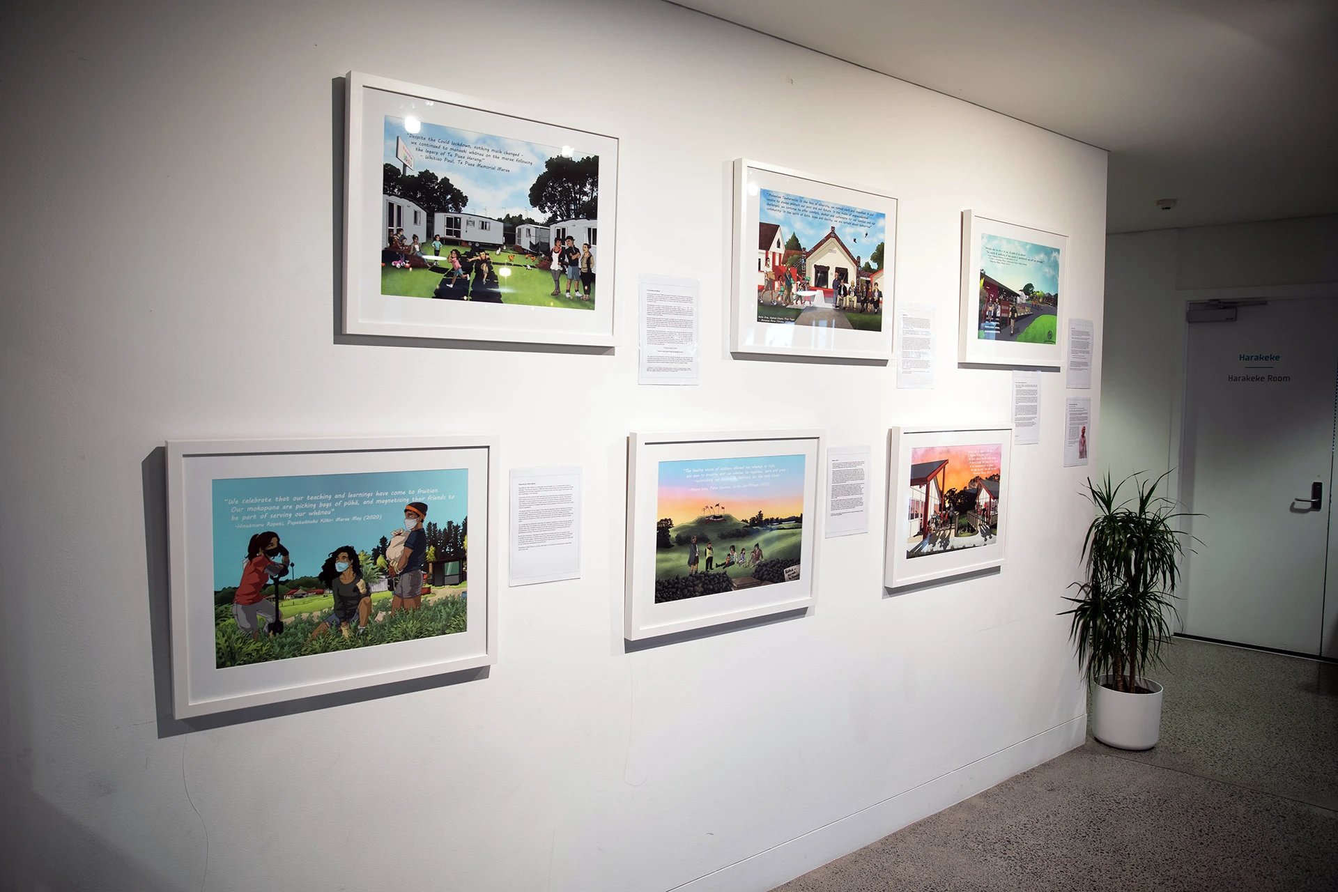 This Pikitia Exhibition is the voice of the six marae. Four of the six marae are located in Mangere. It is a privilege that Pūrangakura has been able to showcase the am azing community contribution of these marae and their whanaunga marae from Manurewa and Papakura at a South Auckland site, and with their local community at the Mangere Arts Centre.